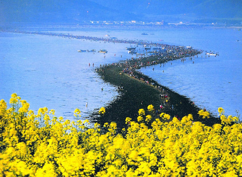 Между тем, в этот день можно вспомнить об одном из самых удивительных явлений природы - разумеется, связанном с морем. Не так далеко от Приморья - между двумя островами южнокорейского уезда Чиндо море систематически расступается, обнажая проход длиной 2 км и шириной 40 м.