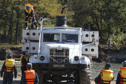 Шесть автомобилей-вездеходов КРАЗ-255 с комплектами мостового проезда прибыли по железной дороге из Сибирского спасательного центра МЧС и Приволжского регионального центра МЧС. Последний автомобиль доехал в Приморский край 30 сентября.