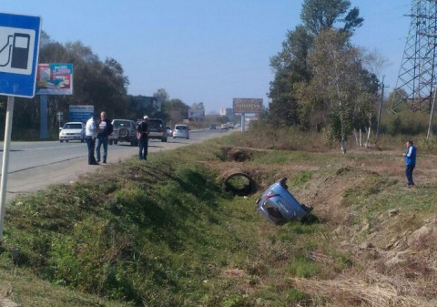 Как стало известно агентству, сегодня в первой половине дня в Большом Камне водитель не справился с управлением своей малолитражки и в результате машина улетела в придорожную канаву.
