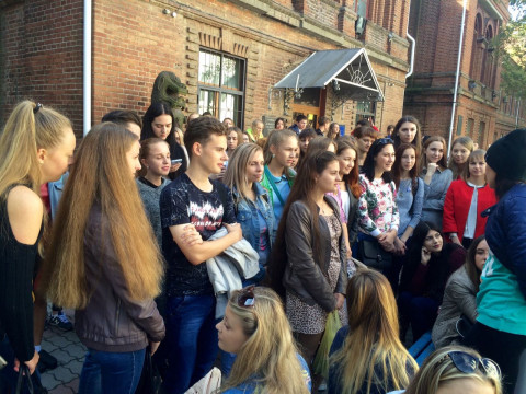 Благодаря анонсам в соцсетях и "сарафанному радио" нехватки в требующейся массовке съемочная группа не испытывает. С раннего утра к театру потянулись десятки юношей и девушек, для которых потратить целый день на то, чтобы на секунду мелькнуть в кадре - вполне приемлемая цена.