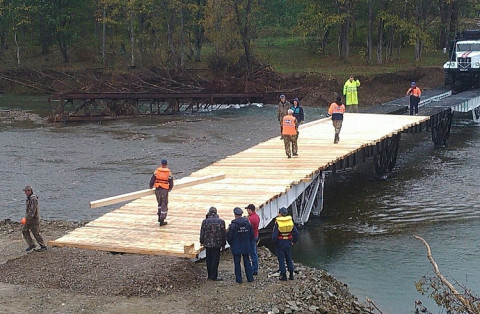 Напомним, всего с начала периода ухудшения паводковой обстановки в Приморье отремонтированы 65 автомобильных мостов, а также восстановлены подъездные пути к ним. 23 сентября на заседании Правительственной комиссии по ликвидации стихийного бедствия под руководством полномочного представителя Президента РФ в ДФО Юрия Трутнева Губернатор Приморского края Владимир Миклушевский акцентировал, что для восстановления транспортного сообщения со всеми населенными пунктами региона необходимы еще четыре разборных моста. Два уже выделены из резерва МЧС, ещё один тяжелый механизированный мост из Приволжского регионального центра МЧС России прибудет в первой декаде октября. Вице-премьер пообещал оказать содействие в решении этого вопроса.