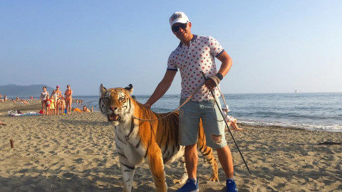 Мужчина, выгуливающий тигра на пляже «Золотари» в Находке, оказался артистом цирка, об этом сообщат ИА «Дейта.ру»