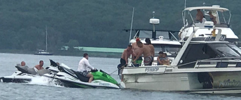 Как рассказали очевидцы, водный мотоцикл на полном ходу влетел в катер. Когда перед водителем возникло препятствие в виде катера, он резким поворот хотел уйти от столкновения, но не успел. На корме катера зияет пробоина.