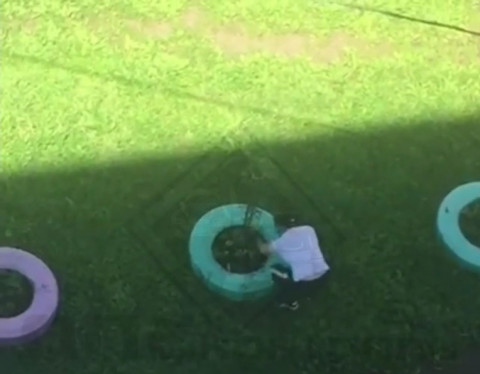 На видео запечатлен молодой человек, который странным образом роется в клумбе, вырывая растения и комья земли.