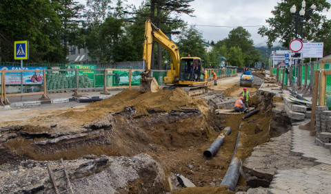 На Комсомольской уже выполнен большой объем работ по замене инженерных сетей - труб тепло- и водоснабжения, ливневой канализации. Со следующей недели начнется монтаж бордюрного камня и укладка тротуарной плитки. Комплексный ремонт завершится осенью. Улица получит новую проезжую часть, будут обустроены пешеходные зоны, установлены автобусные павильоны и системы наружного освещения.