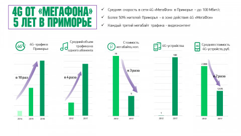 «В эти дни мы отмечаем первое пятилетие LTE в Приморье, - говорит Артем Базыль, директор Приморского регионального отделения компании «Мегафон». — Все это время трафик в наших сетях четвертого поколения рос стабильно высокими темпами, последние месяцы прошлого года он продемонстрировал стабильно высокий рост, ставит новые рекорды и в текущем году. Сегодня значительная часть наших клиентов – так называемые цифровые абоненты – это те, кто голосовому общению предпочитают возможности мобильного интернета, а также активно скачивают видео, пользуются онлайн приложениями и сервисами. Число таких абонентов постоянно растет. Им требуются новые скорости, и мы готовы удовлетворить их растущие потребности».
