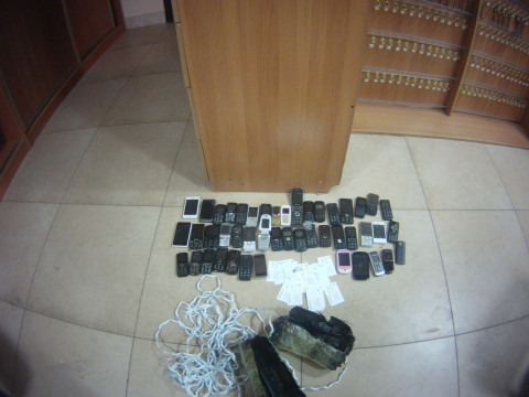 Сотрудники обнаружили и изъяли два свертка, в которых на режимную территорию пытались передать 45 мобильных телефонов и более 20 сим-карт.