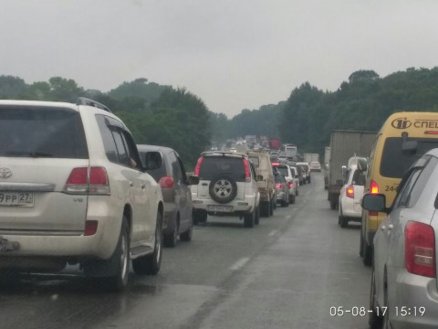 Со стороны Владивостока пробка начинается с поселка Новый.