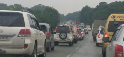 Со стороны Владивостока пробка начинается с поселка Новый.