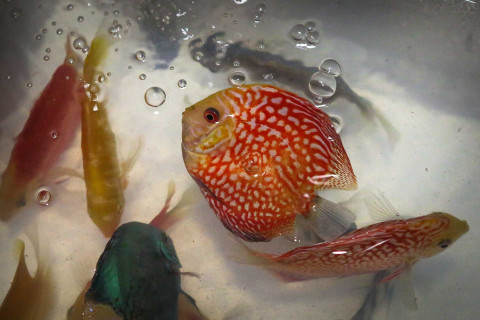 Это пресноводные тропические рыбы, выращенные в искусственных условиях во Вьетнаме. Чукучаны китайские (миксоципринусы), обыкновенные илистые прыгуны, полосатые брызгуны, настоящие гурами и равнополосые дискусы прибыли регулярным авиарейсом.