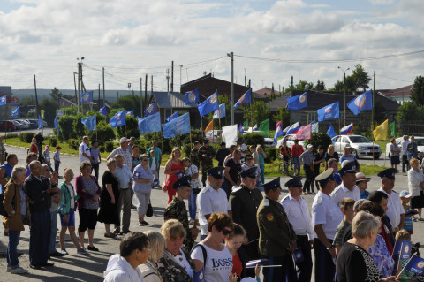 Затем состоялась торжественная передача символов международного патриотического пробега. Флаг, штандарты и икону Покрова Богородицы представители регионального отделения ДОСААФ России Тюменской области вручили коллегам из свердловской областной организации.