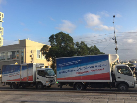 Машины с гуманитарным грузом уже выехали прибыли в Михайловский район и Уссурийск.