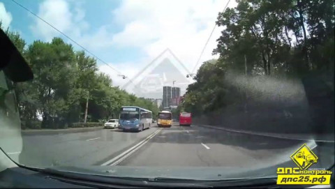 По информации очевидцев, такой «трюк» совершил водитель 54 автобуса с номером АВ 034. с пассажирами в салоне обогнал своего конкурента на Океанском проспекте, в районе Покровского парка.
