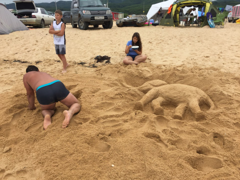В Ливадии очень сильный прилив. За ночь вода может дойти до палатки, даже если она была установлена на приличном расстоянии от воды. Чтобы уберечь себя от затопления, отдыхающие создают ров.