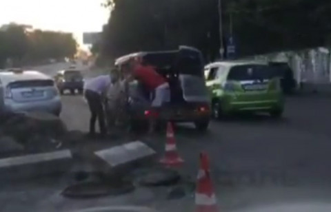 По мнению очевидцев, крышки отправятся на приемку металлолома, а полученные средства «герои видеоролика» потратят на собственные нужды.