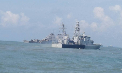 В результате столкновения пятеро моряков пострадали и десять человек пропали без вести.