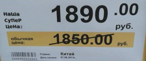Согласно новому "супер-предложению", более выгодная цена на 40 рублей больше "невыгодной". Странное предложение озадачило горожан, и фотографию ценника люди выложили в социальных сетях.