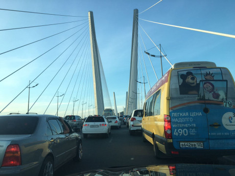 Золотой мост стоит в многокилометровой пробке в сторону центра Владивостока, сообщает ИА «Deita.ru».