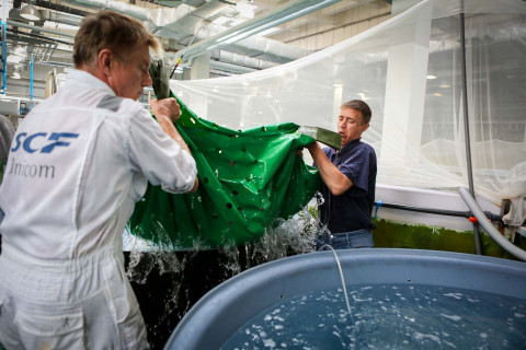После того, как рыба немного успокоилась, ее пересаживают в раствор с транквилизатором. Он необходим, чтобы акула легче перенесла переезд. В воде её принимает сотрудник отдела в водолазном снаряжении, который первые 10 минут плавает вместе рыбой. Он следит за её состоянием, дожидаясь прекращения действия транквилизатора.