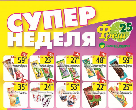 С 28 августа по 5 сентября во всей сети супермаркетов «Фреш 25» скидки до 35 % на любимые марки мороженого. Покупайте вкусное мороженое во «Фреш 25»*. Порадуйте себя и своих близких!