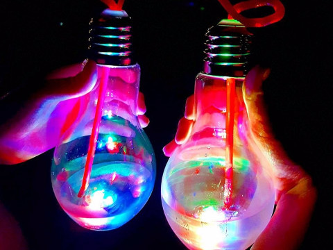 Во многих местах, особенно в Японии и Корее, продают эти напитки в лампочках, и они, действительно, светятся. В лампочки помещен специальный мигающий светодиод.