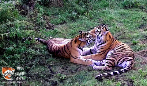 «В летнее время достаточно сложно наблюдать за тиграми из-за густой растительности в вольере. Если вдруг удалось зафиксировать одного тигра, значит скоро появиться второй. Создается впечатление, что наши тигры неразлучны все время, - комментирует директор МРОО «Центр «Тигр» Виктор Кузьменко. – Недавно мы установили специальную запаховую метку – это простое растительное мало, незнакомый для тигров запах. Над меткой расположена камера и когда тигры фырчат на незнакомый объект, раскрывают пасть и у нас появляется возможность оценить состояние и рост клыков у хищников».