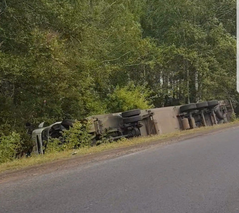 По словам очевидцев, длинномер съехал с дороги и опрокинулся на бок. В результате грузовик оказался в кювете.