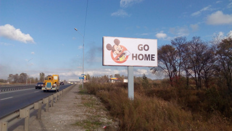 Накануне отъезда экс-губернатора Приморского края Владимира Миклушевского к нынешнему месту работы в Москве по дороге в аэропорт «Владивосток» появился баннер, на котором изображен перечеркнутый Микки-Маус и написано большими буквами «GO HOME», сообщает «Deita.ru».