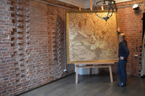 Арт-объект представляет собой ремейк популярной картины автора «Путин со щенком», оригинал которой находится у председателя Госдумы Вячеслава Володина. Картина входит в коллекцию «Президент. Добрейшей души человек», которая являлась первым подарком на День рождения Владимира Путина в 2012 году. Объемный холст 180х180 см с изображением президента полностью выполнен золотой краской – имитация сусального золота.