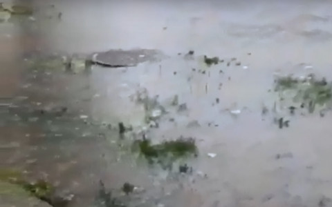 По словам местной жительницы, опубликовавшей видео, воды в подъезде по щиколотку. При этом вода течет прямым потоком с улицы.