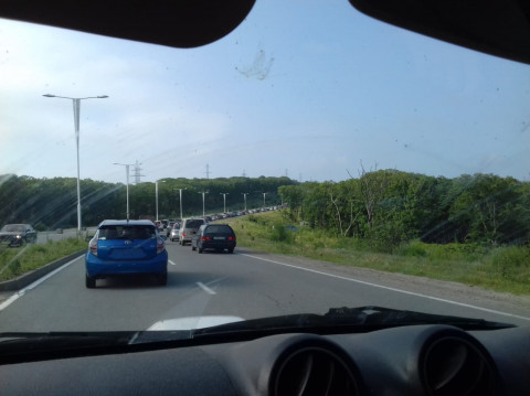 Дорожный затор начинается, не доезжая Смоляниново и тянется до самого Шкотово. «Ливадия домой едет», - комментируют понятливые пользователи.