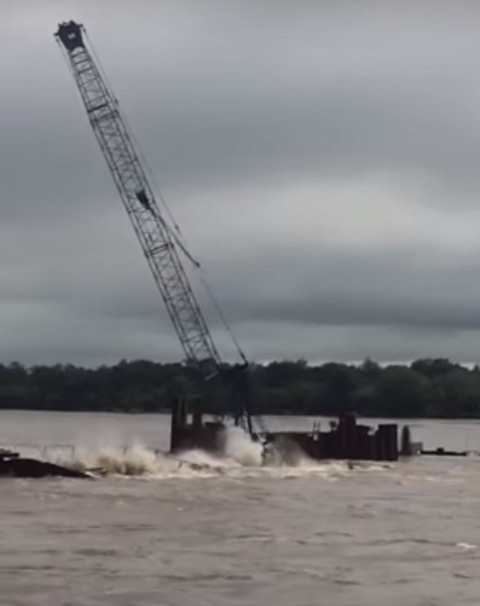Как пишет VSE42, на строительной площадке моста через реку Амур в результате сильного паводка были смыты четыре пролета временного моста. Стоявшим на одном из пролетов кран, также был унесен водой.