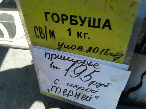 По словам одного из поставщиков, дешевая рыба закончилась: всю доступную горбушу за 100 рублей продали в пятницу, а сейчас торгуют другой горбушей.
