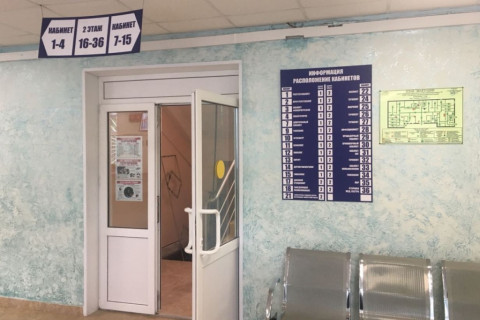 Благодаря перепланировке теперь холл поликлиники просторный и светлый, а вместо стандартной регистратуры с одним окошком – панорамная регистратура и отдельное картохранилище.