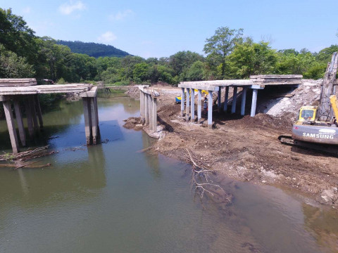 В Кондратеновке строители уже сняли дорожное полотно с моста, демонтировали плиты, начали ремонтировать опорную конструкцию.