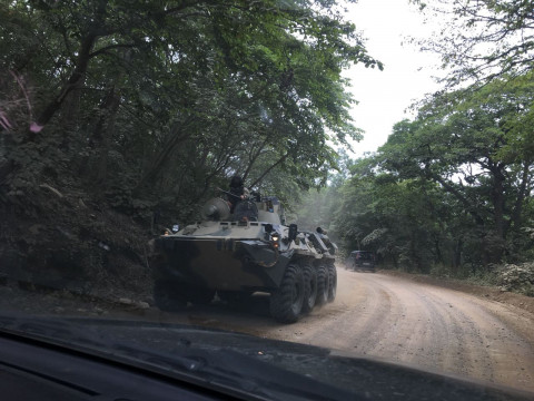 В пятницу, 27 июля, на Русском острове замечена колонна танков, сообщает корреспондент DEITA.RU. Стройными рядами военная техника идет по грунтовой дороге в глубине острова.