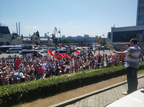 Всероссийская акция протеста с требованием прекратить пенсионную реформу прошла сегодня на привокзальной площади Владивостока.