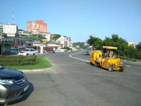 Кроме того, во Владивостоке начали наносить разметку термопластиком. Этот материал отличает долговечность, а потому он требует тщательного соблюдения технологии нанесения. Специальная машина Borum нанесла около 5 километров сплошных линий, 6 километров пунктира и 348 «квадратов» «зебры».