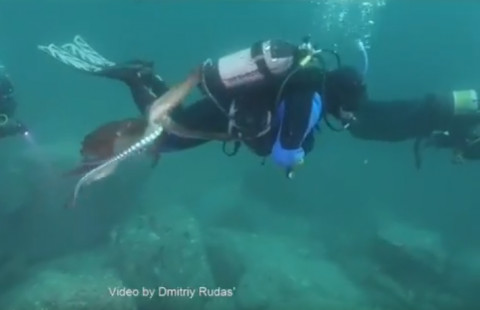 По его словам, в пятницу, 3 августа, на одного из дайверов, которые обследовали морские глубины в поисках осьминога, напал сам искомый объект.
