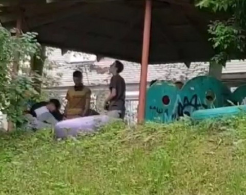 На записи компания молодых людей распивает спиртное, замахивается руками друг на друга и курят.