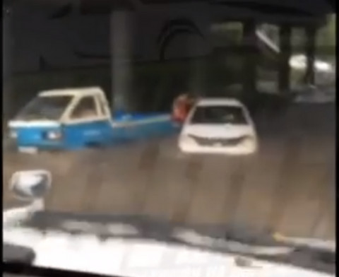 На данный момент все автомобилисты предупреждают друг друга, что под путепроводом в районе Столетия делать нечего — мало какая машина сможет проехать огромную лужу, предлагают искать объездные пути.