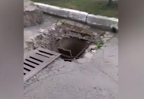 По словам местных жителей, эта дыра существует уже несколько лет. Раньше она была закрыта решеткой, а та, в свою очередь, была придавлена камнем, но 2 августа его снесла невнимательная автомобилистка, врезавшись в камень. Решетка упала вниз, а блок на место не поставили.