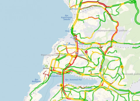 По данным интернет-портала «Яндекс. Пробки», в 14:30 по местному времени транспортная загруженность города достигла 7 баллов из 10 возможных. На основной автомобильной магистрали от остановки Театра оперы и Балета и до проспекта Столетия, движение замедлено. Одна из возможных причин - два ДТП на разных участках некрасовского путепровода. На Выселковой сломался рейсовый автобус, что также осложнило движение автомобилей на этом участке. Фуникулер, Океанский Проспект, Эгершельд, Первая Речка, Луговая и Спортивная также «стоят». С чем связан транспортный коллапс в такое нехарактерное для пробок время - точно неизвестно, но можно предположить, что ДТП, дорожные работы на центральных улицах и неработающий светофор на оживленном участке улицы Русской парализовали работу города.