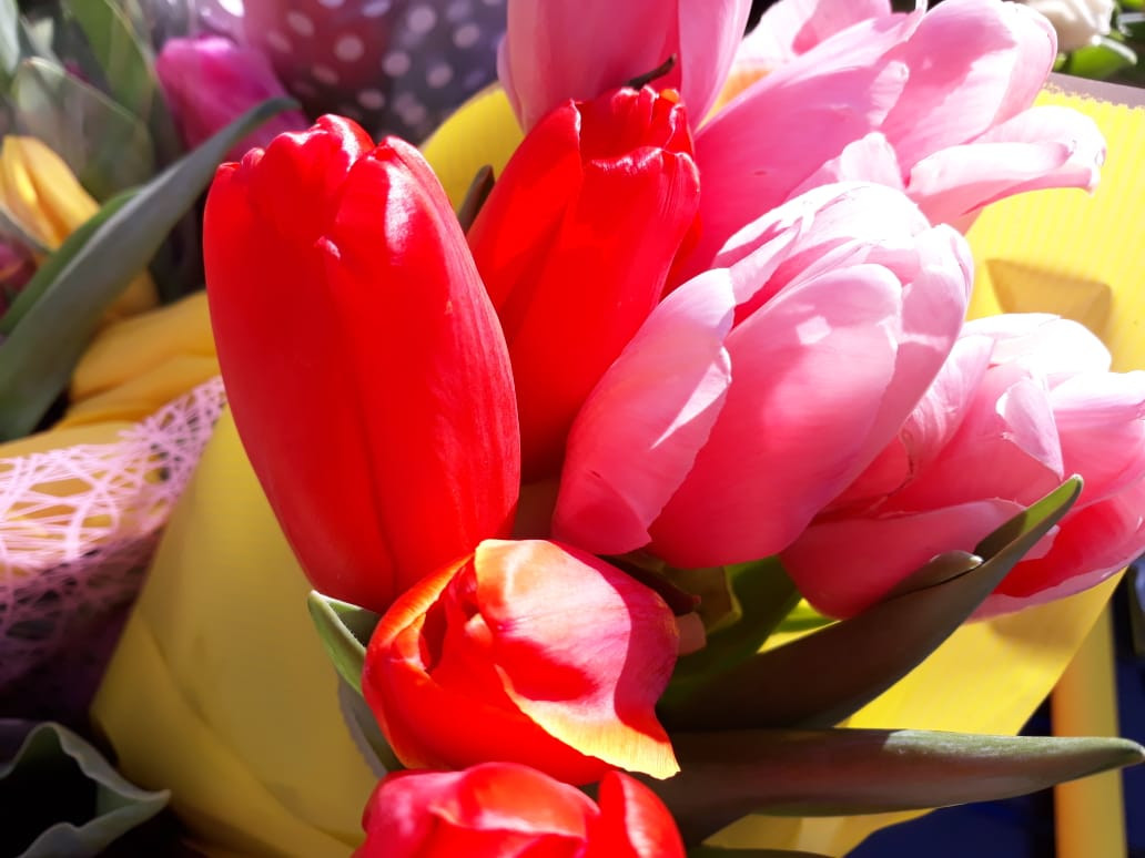 Буйство красок – от нежно-розового до оранжевого. Алые тюльпаны оказались самыми ходовыми — их разбирали практически сразу.