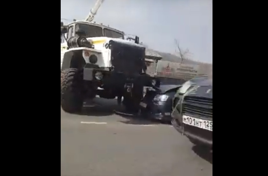 Нелепое ДТП произошло во Владивостоке в понедельник, 18 марта, сообщает корреспондент DEITA.RU. Неприятная авария случилась вблизи 30-го дома по улице Выселковой.