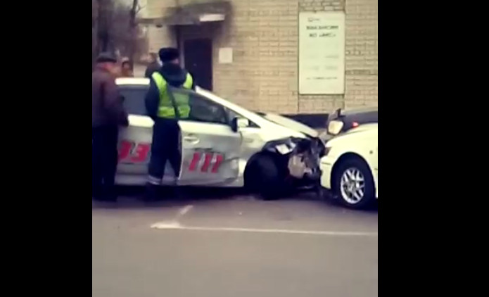 По улице Мухина — Октябрьская столкнулись четыре автомобиля, один из них — машина службы такси. На видео, присланному в редакцию, можно заметить, что три автомобиля находятся в куче. Они друг к другу развернуты передним бампером, а одно авто стоит отдельно.