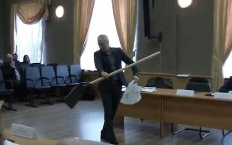 В администрации Озёрска Челябинской области произошёл курьёзный случай. После своего отчёта перед местными депутатами, один из них решил подарить ему лопату в качестве инструмента работы.