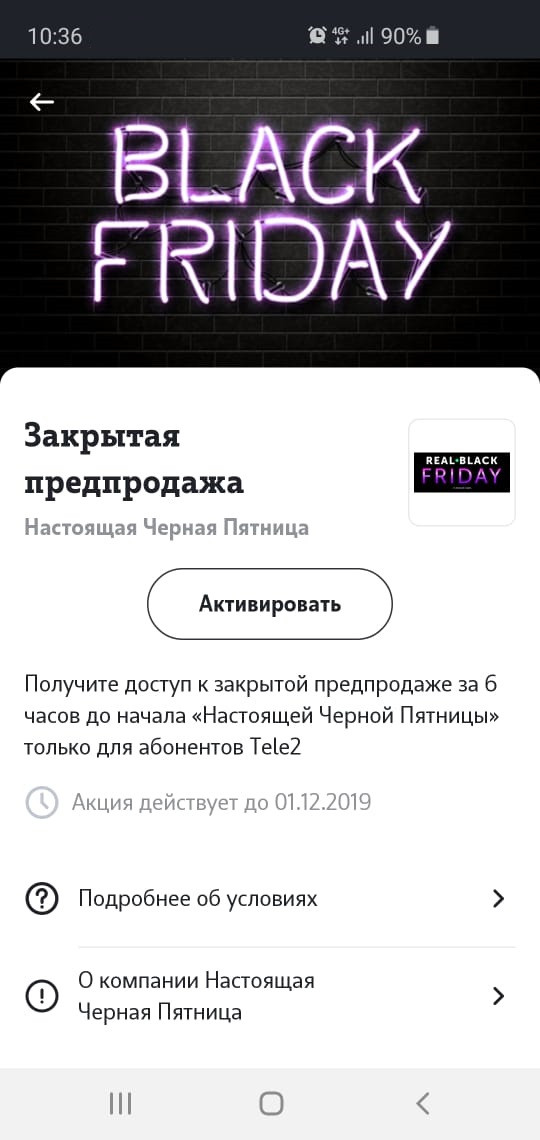 Абоненты Tele2 смогут принять участие в закрытой предпродаже «Настоящая черная пятница» на площадке b-friday.com. Для них акция начнется за 6 часов до официального старта – уже в четверг, 28 ноября, в 18:00 по московскому времени. Абоненты Tele2 смогут первыми приобрести товары российских и зарубежных партнеров со скидкой до 90%. Выгодные предложения распространяются на товары самых разных категорий – от бытовой техники до заказа авиабилетов и брони отелей.