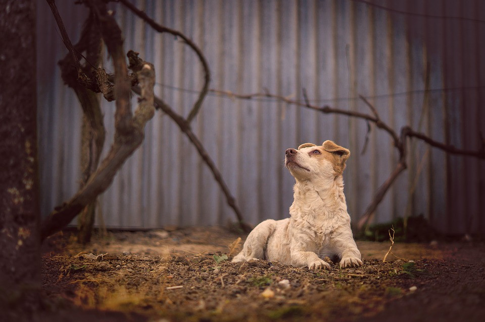 Кто-то из прохожих соорудил небольшой навес от дождя, собаке оставляют еду и воду. Пока о голодании речь точно не идет: животное успешно ловит голубей, которые приходят поклевать «ее» провизию.