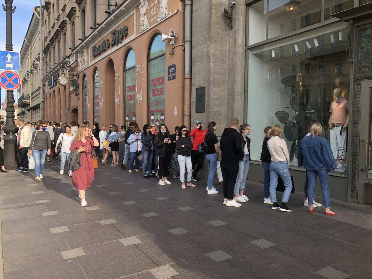 На прошлой неделе в Петербурге разрешили открыть магазины одежды и прочие непродовольственные торговые точки. С тех пор на Невском проспекте возле магазина Zara ежедневно образовывается огромная очередь, сообщает ИА DEITA.RU.